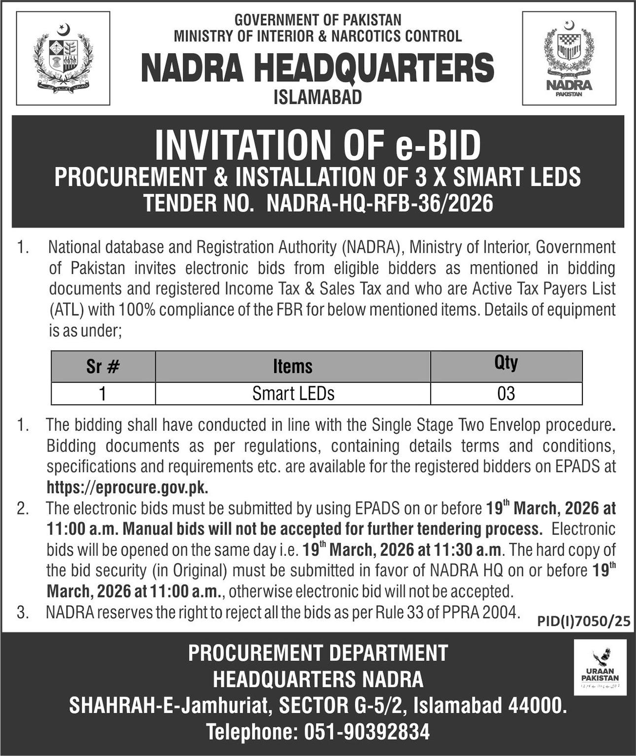 Ministry of Interior NADRA HQ Islamabad