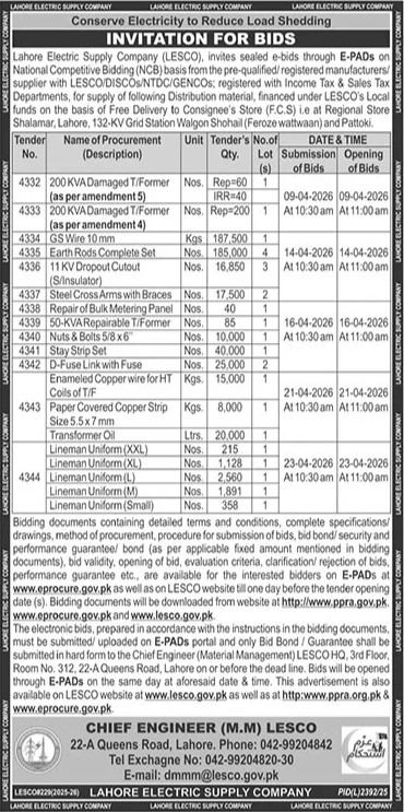 Cables, Electrical, Electronics, Energy, General Order Supply, Machinery, Mechanical, Steel, Textile/Uniform/Shoes, WAPDA