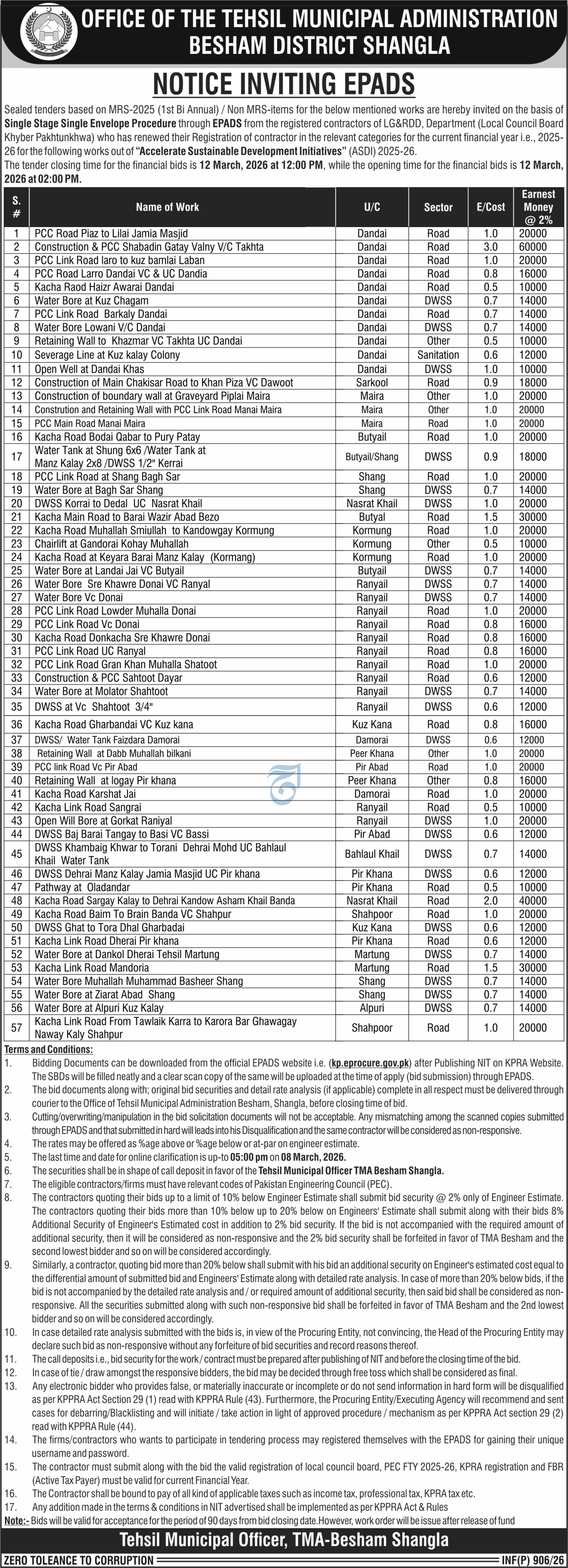 Buildings, Construction, Engineering, Repair & Maintenance, Roads, Water Supply Scheme / Drains / Sewerage