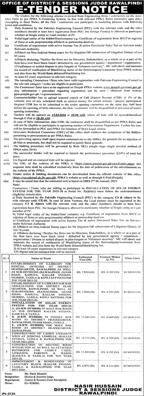 Buildings, Construction, Engineering, Pumps, Repair & Maintenance, Roads, Tubewells, Water Supply Scheme / Drains / Sewerage