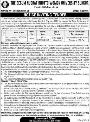 The Begum Nusrat Bhutto Women University, Sukkur