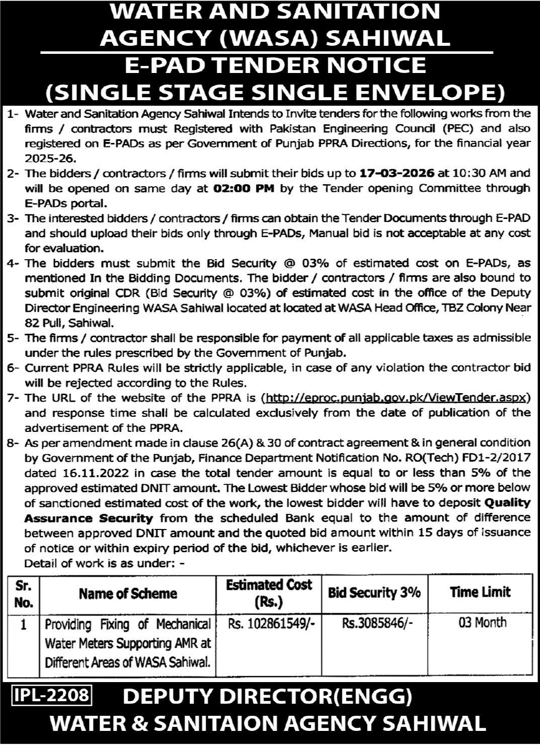 Construction, Electrical, Electronics, Engineering, General Order Supply, Machinery, Mechanical, Repair & Maintenance, WASA, Water Supply Scheme / Drains / Sewerage