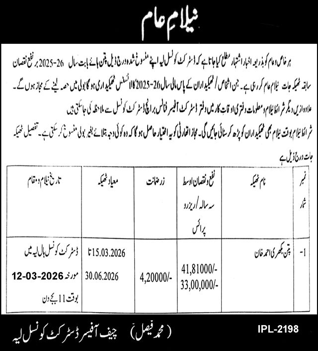 Auction, Baldia, Scrap Material, Toll Tax