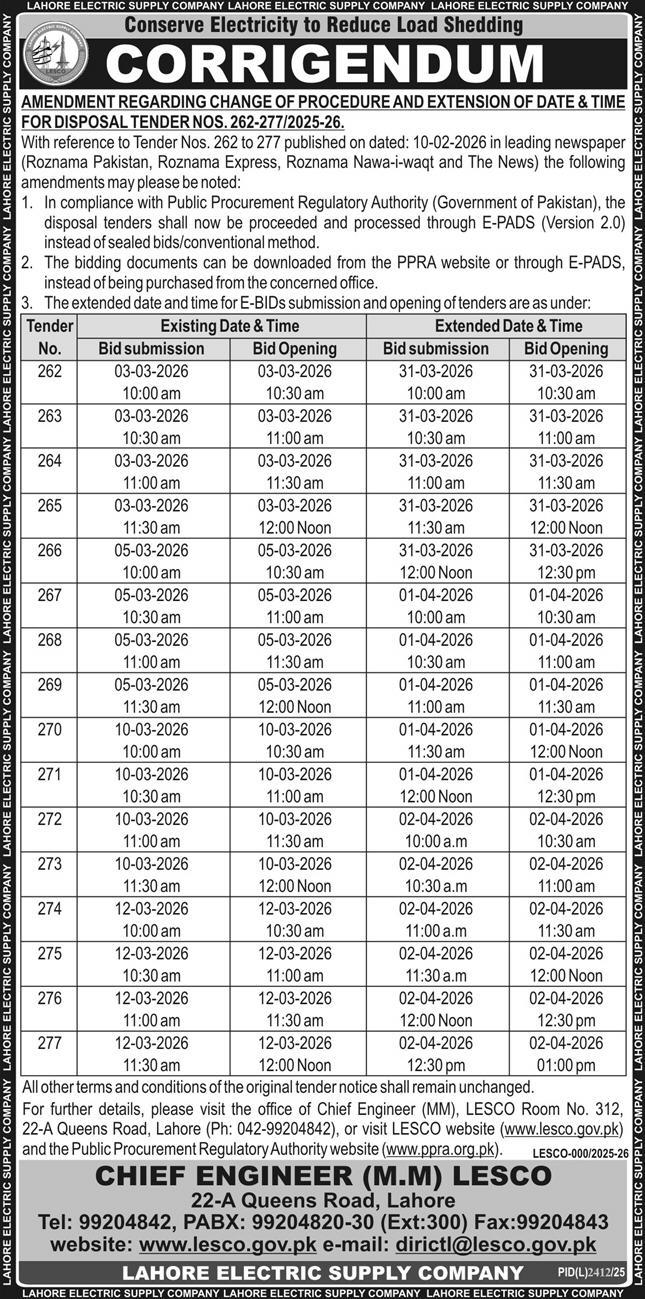 Construction, Corrigendum/Addendum , Electrical, Electronics, Engineering, General Order Supply, Machinery, Mechanical, Repair & Maintenance, WAPDA