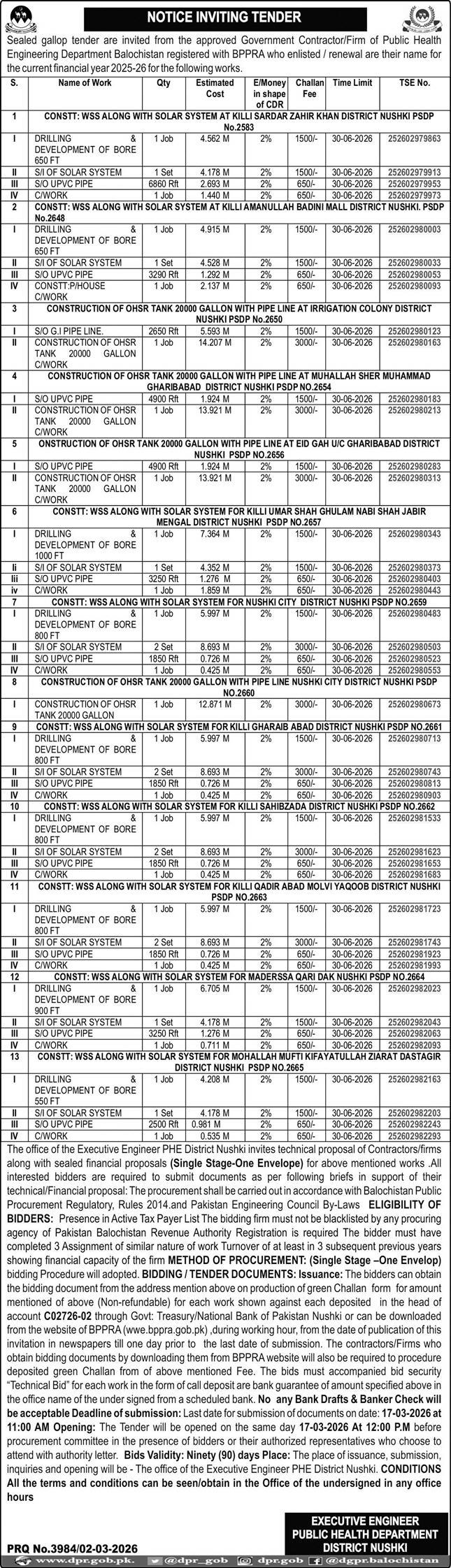 Buildings, Construction, Engineering, Repair & Maintenance, Roads, Water Supply Scheme / Drains / Sewerage