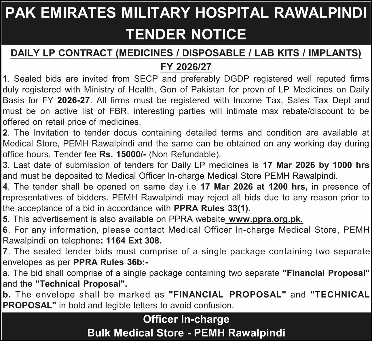Tender Description