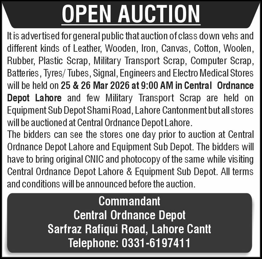 Auction, Baldia, Scrap Material, Toll Tax