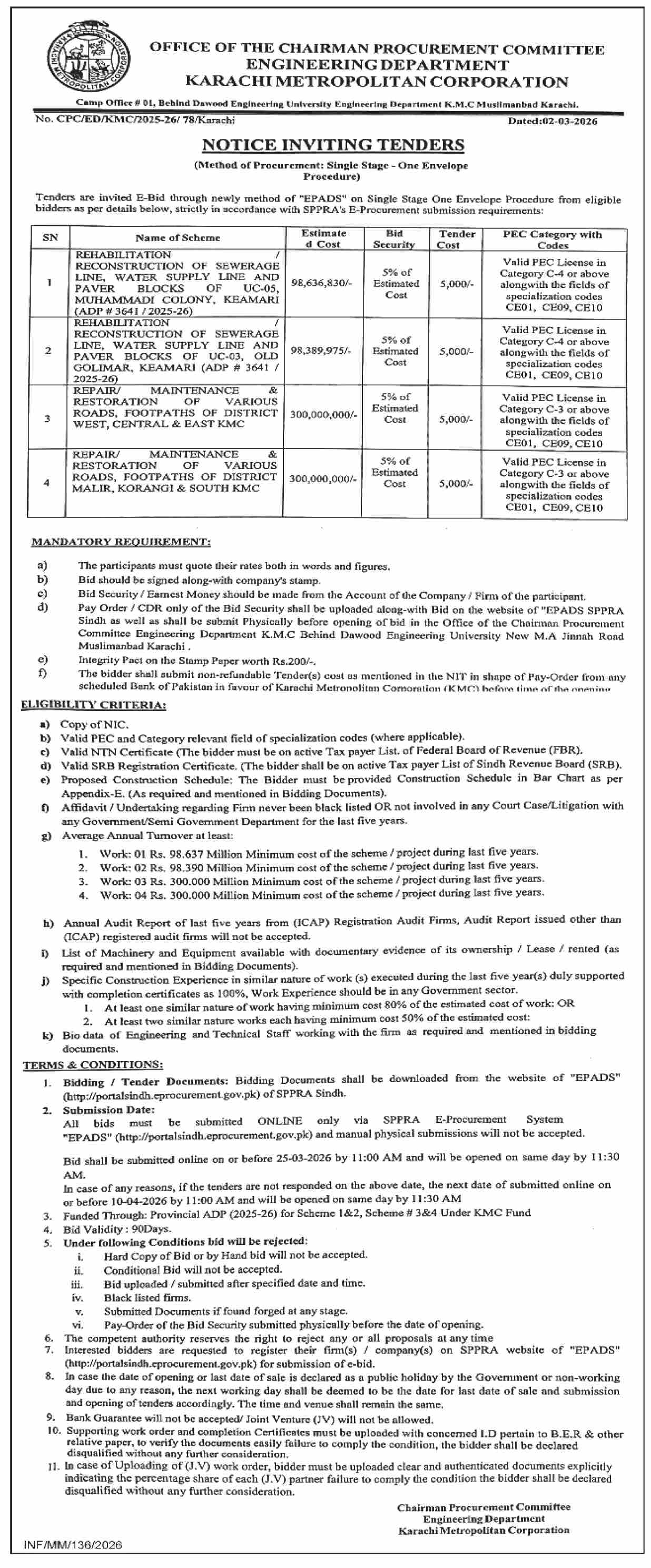 Buildings, Construction, Engineering, Repair & Maintenance, Roads, Water Supply Scheme / Drains / Sewerage
