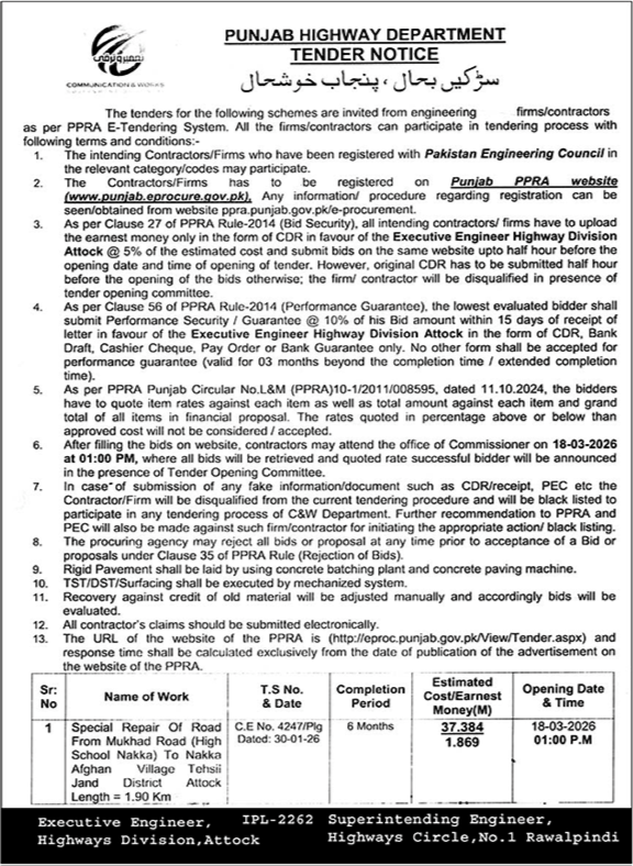 Buildings, Construction, Engineering, Highways, Repair & Maintenance, Roads, Water Supply Scheme / Drains / Sewerage
