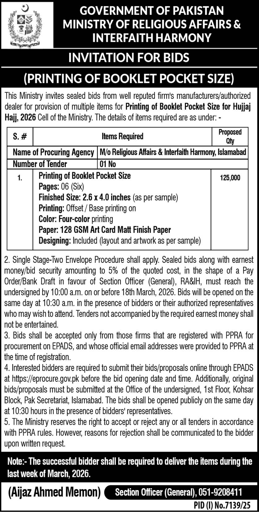 Ministry of Religious Affair and Inter Faith Harmony Directorate of Hajjr