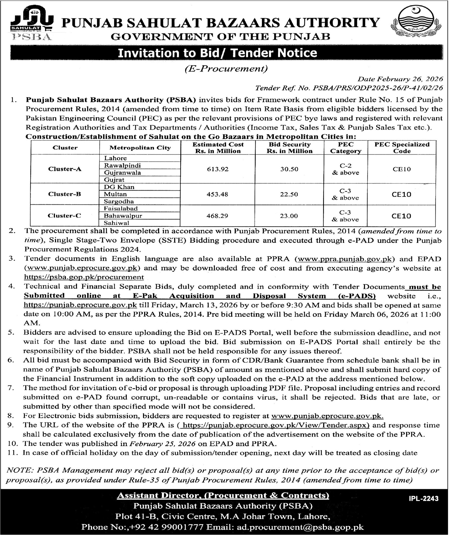 Buildings, Construction, Engineering, Repair & Maintenance, Roads, Water Supply Scheme / Drains / Sewerage