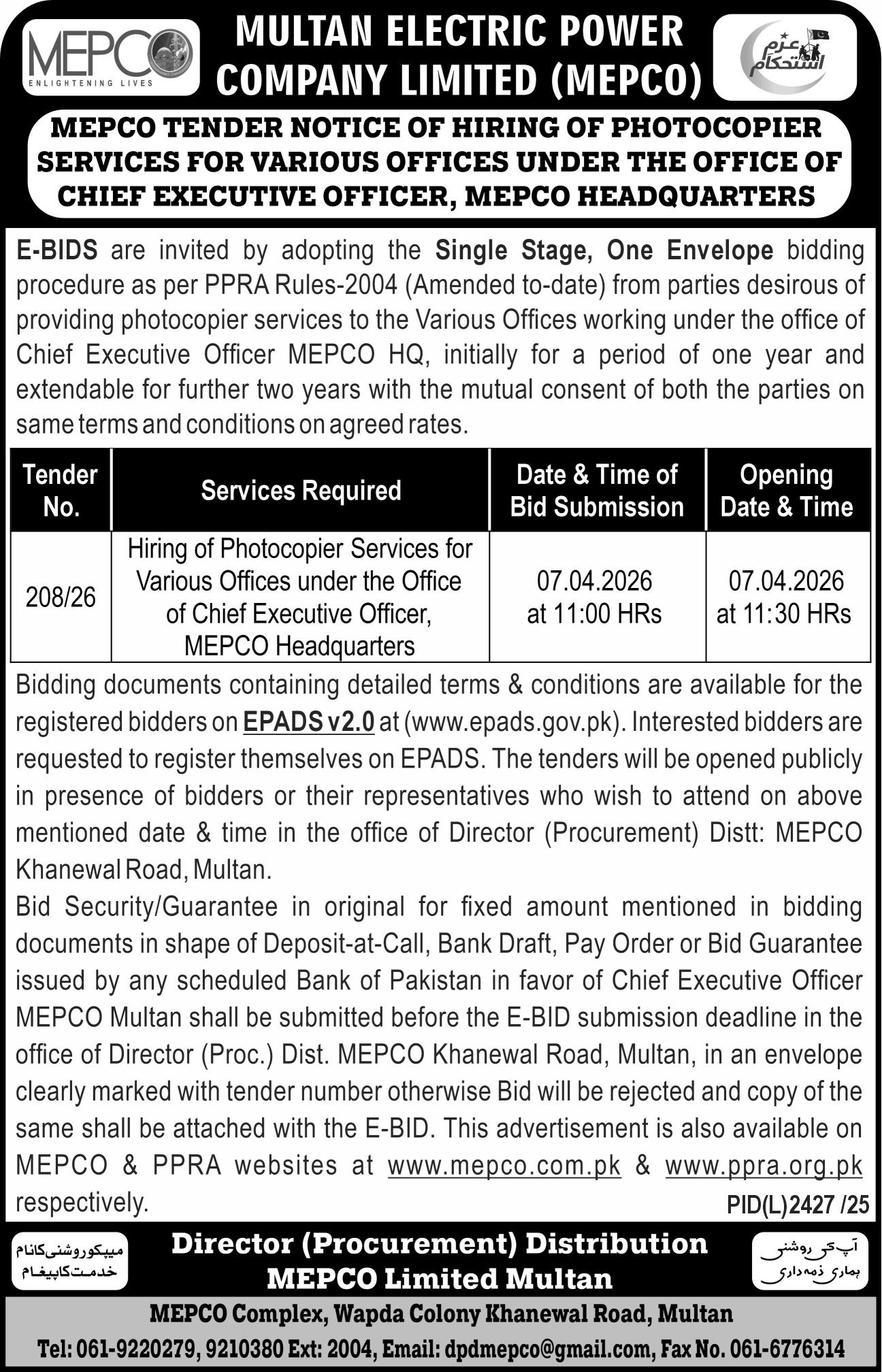 General Order Supply, Machinery, Mechanical, Stationery, WAPDA