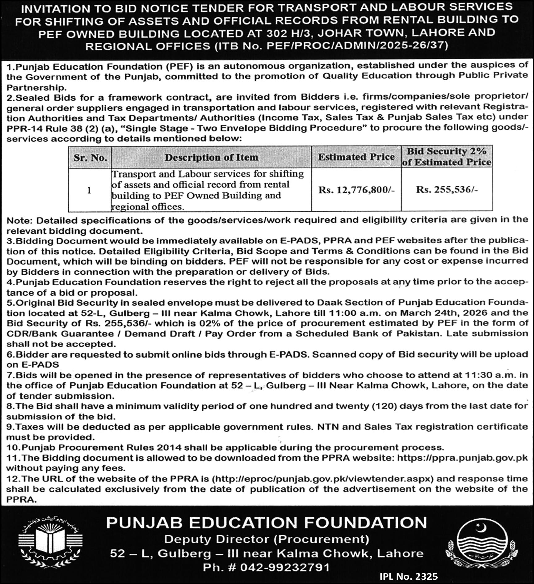 Punjab Education Foundation, Lahore