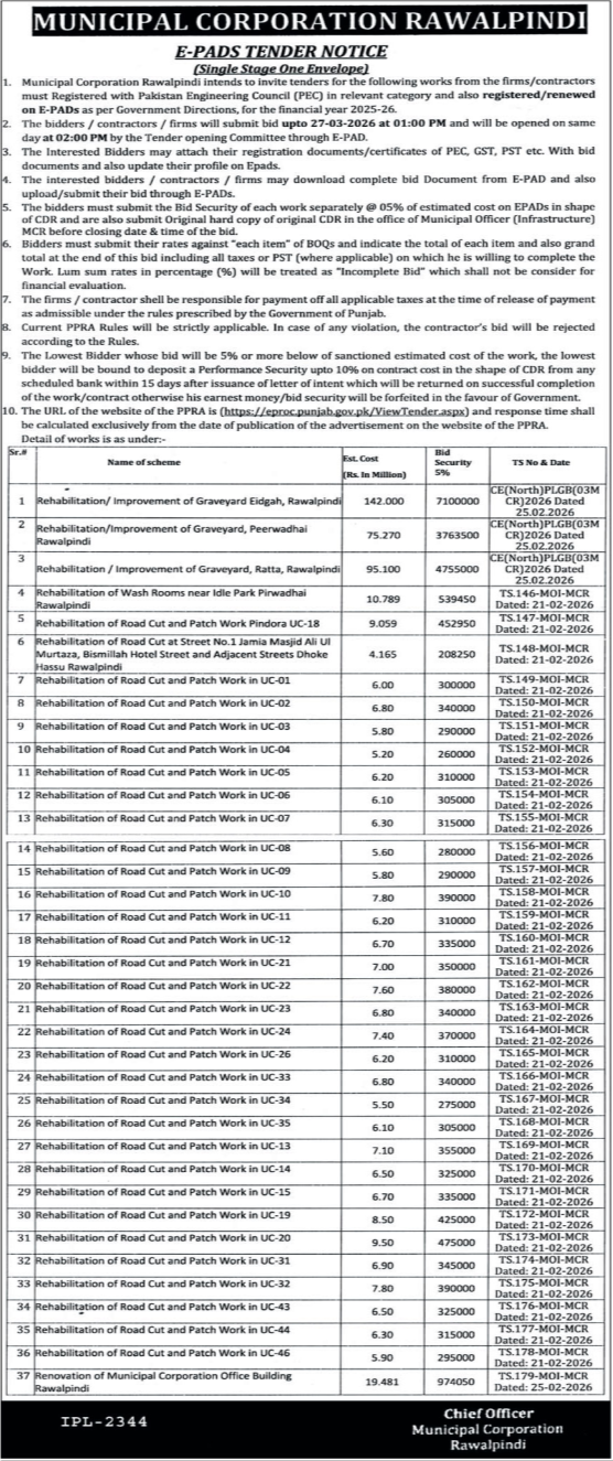 Buildings, Construction, Engineering, Repair & Maintenance, Roads, Water Supply Scheme / Drains / Sewerage