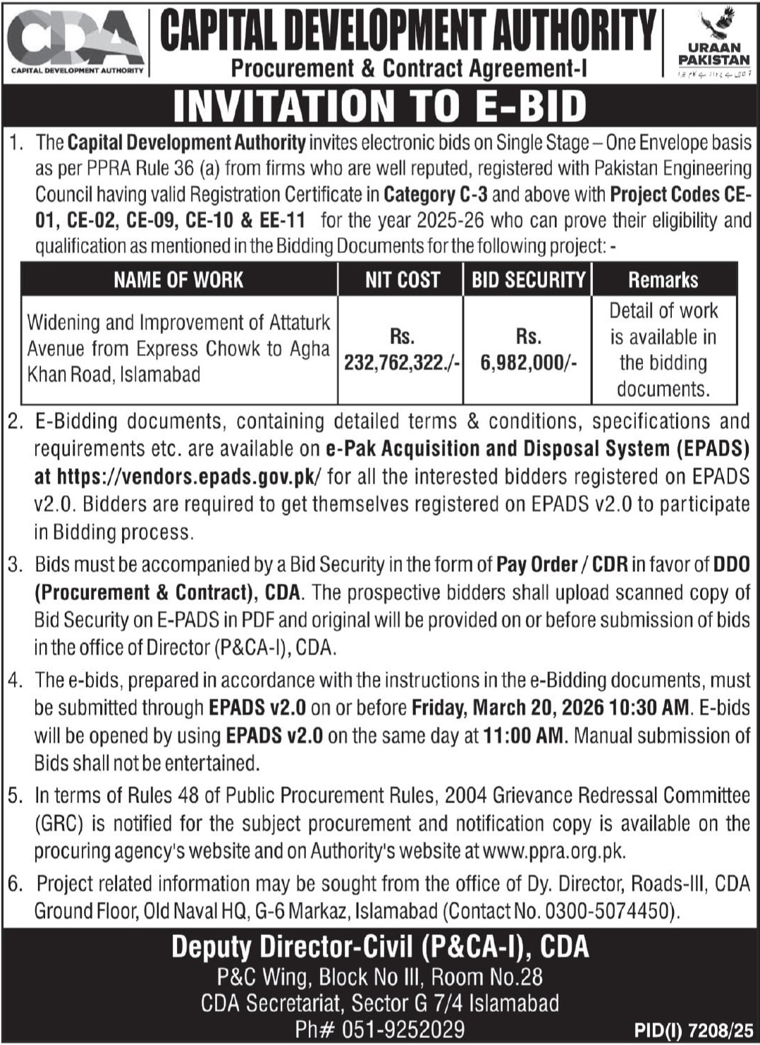 Buildings, Construction, Development Authority, Engineering, Repair & Maintenance, Roads, Water Supply Scheme / Drains / Sewerage
