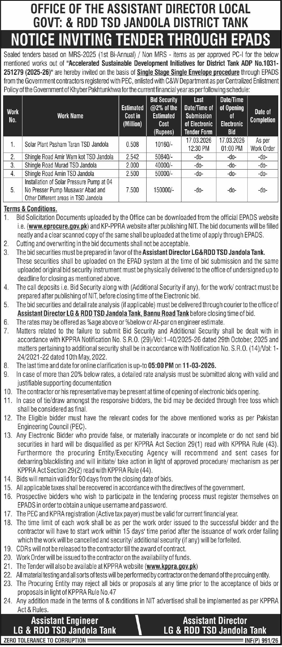 Buildings, Construction, Electrical, Electronics, Energy, Engineering, General Order Supply, Machinery, Mechanical, Pumps, Repair & Maintenance, Roads, Tubewells, Water Supply Scheme / Drains / Sewerage
