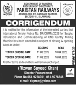 Corrigendum/Addendum , Electrical, Electronics, General Order Supply, Machinery, Mechanical, Railway