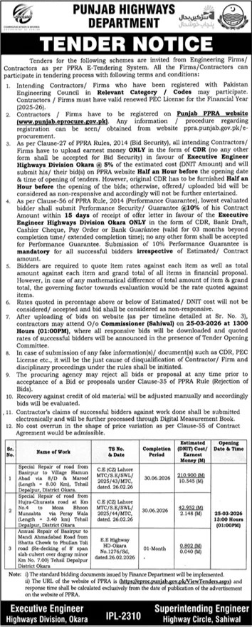 Buildings, Construction, Engineering, Highways, Repair & Maintenance, Roads, Water Supply Scheme / Drains / Sewerage