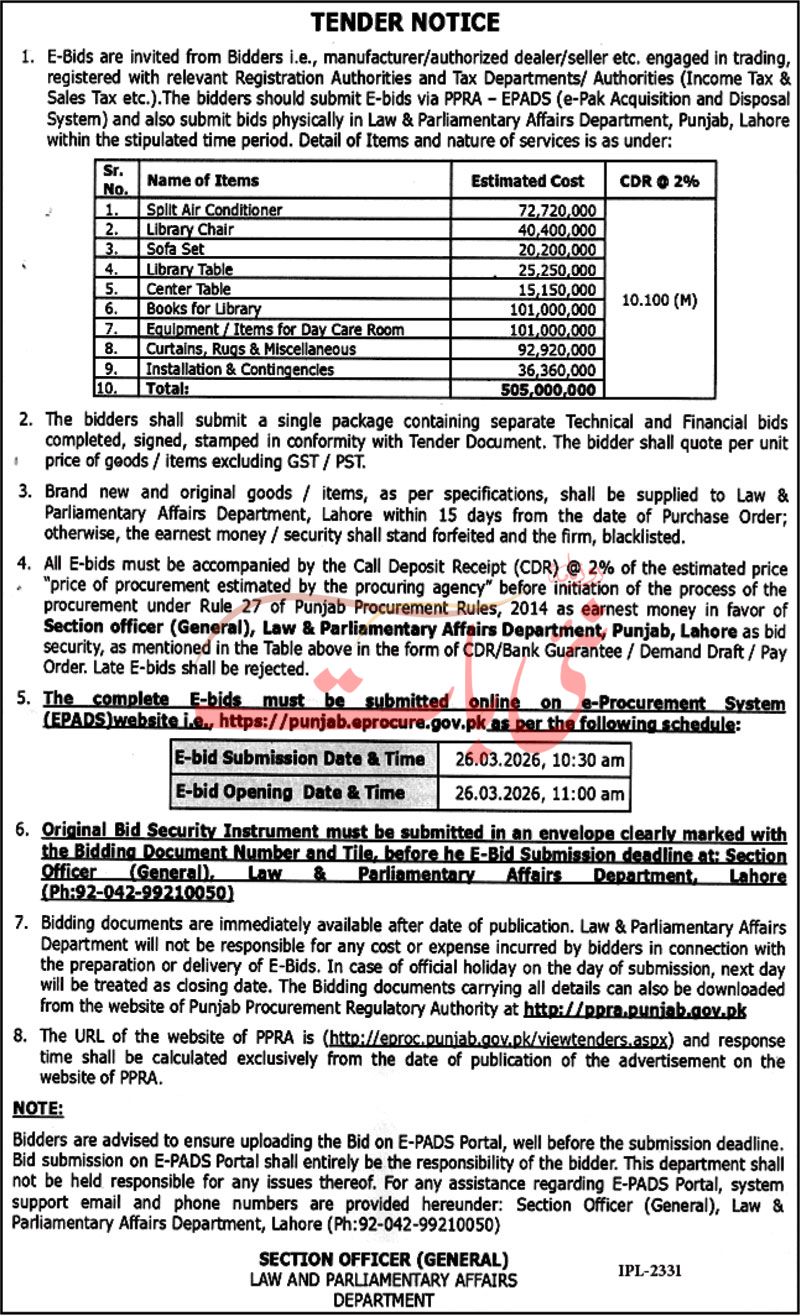 Air Conditioning, Electrical, Electronics, Furniture, General Order Supply, Interiors, Machinery, Mechanical, Stationery, Textile/Uniform/Shoes