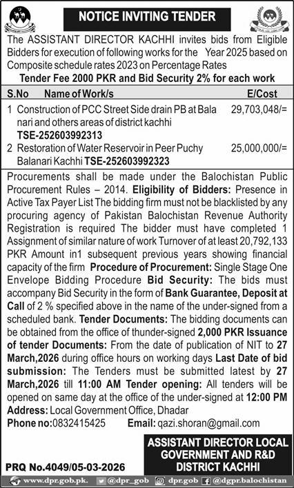 Buildings, Construction, Engineering, Repair & Maintenance, Roads, Water Supply Scheme / Drains / Sewerage