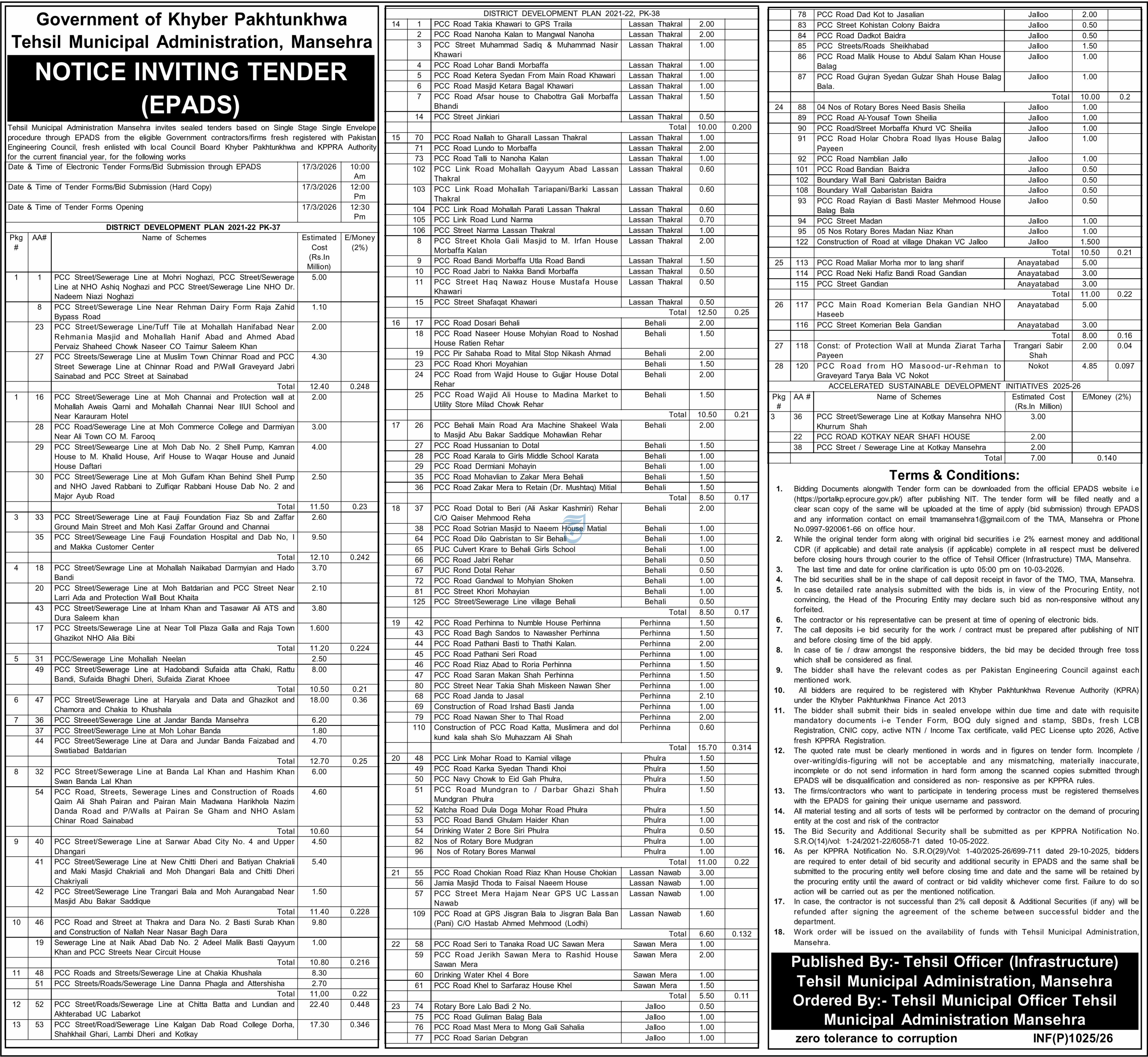 Buildings, Construction, Engineering, Repair & Maintenance, Roads, Water Supply Scheme / Drains / Sewerage