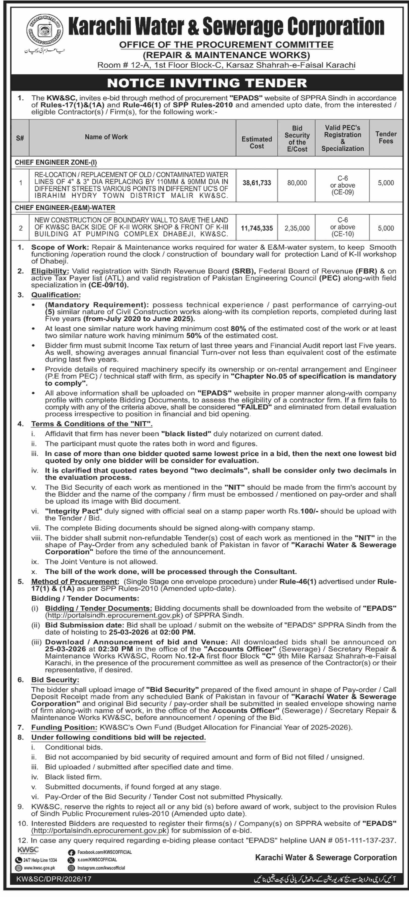 Buildings, Construction, Engineering, Repair & Maintenance, Roads, Water Supply Scheme / Drains / Sewerage