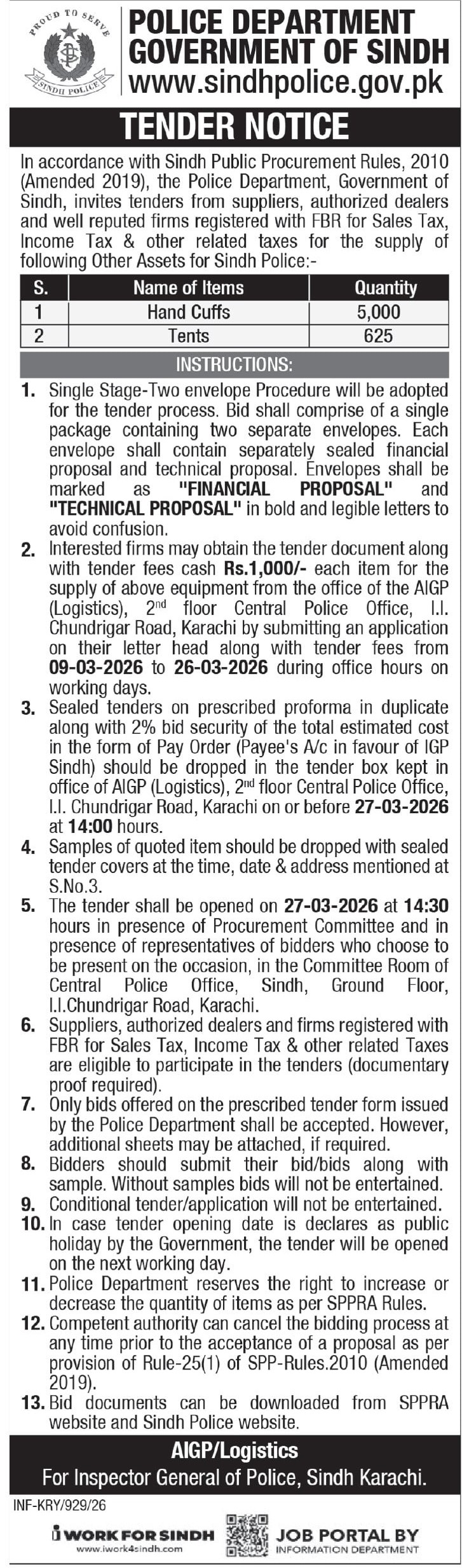 Tender Description
