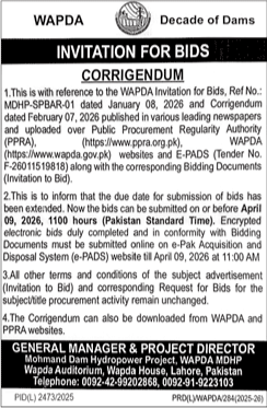 Buildings, Construction, Corrigendum/Addendum , Electrical, Electronics, Engineering, General Order Supply, Machinery, Mechanical, Repair & Maintenance, Roads, WAPDA