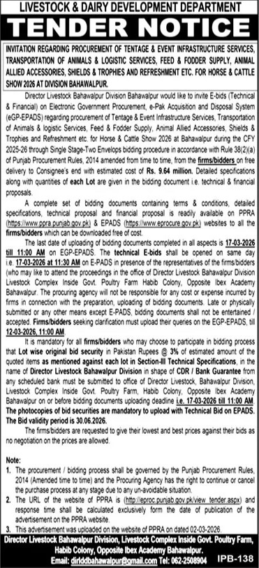 Food / Soap etc., General Order Supply, Live Stock, Logistics, Stationery, Transportation, Veterinary