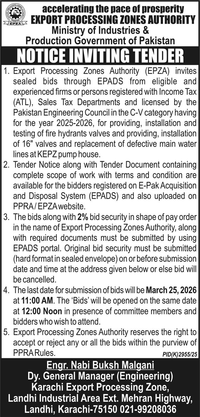 Buildings, Construction, Engineering, General Order Supply, Machinery, Mechanical, Repair & Maintenance, Roads, Water Supply Scheme / Drains / Sewerage