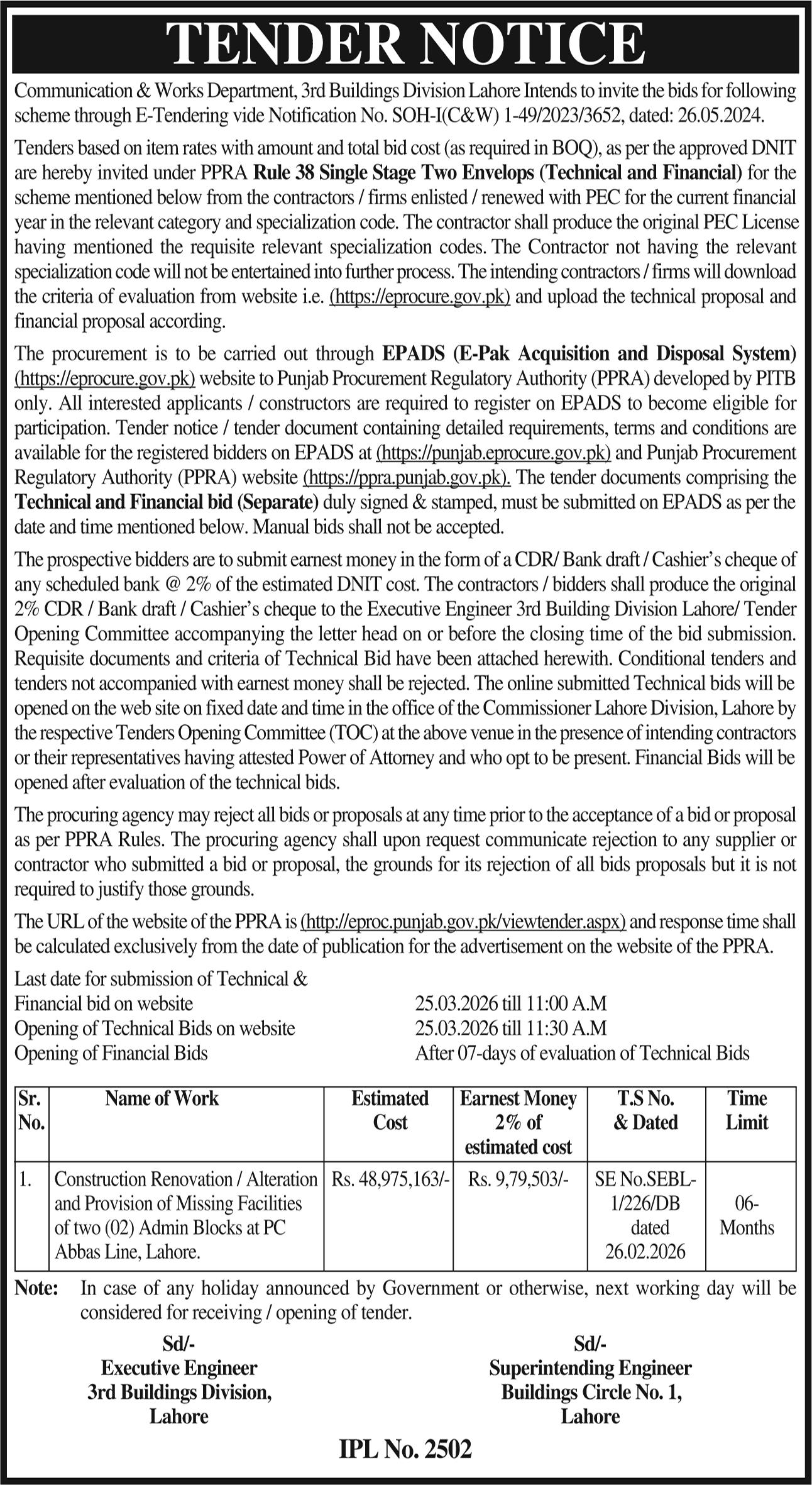 Buildings, Construction, Engineering, Repair & Maintenance, Roads, Water Supply Scheme / Drains / Sewerage