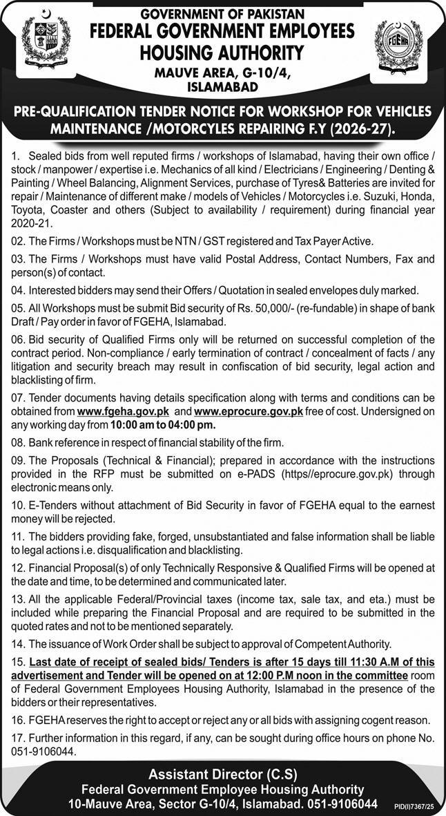 Auto Parts, Automobiles/Vehicles, General Order Supply, Motor Cycle, Pre Qualification, Transportation