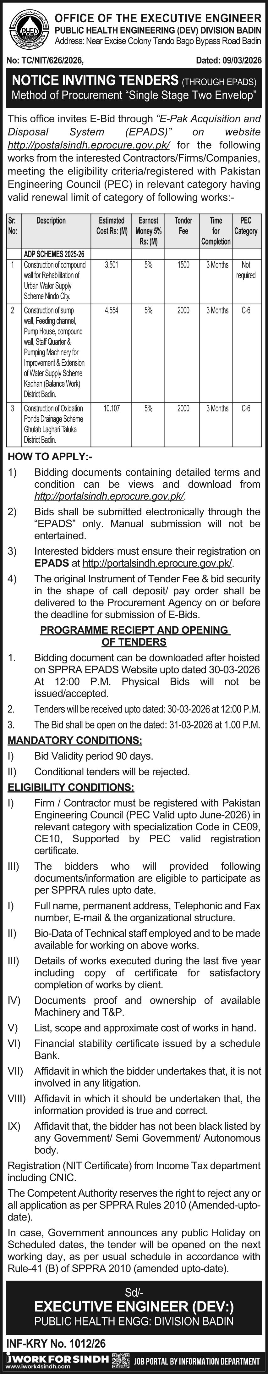 Buildings, Construction, Engineering, Repair & Maintenance, Roads, Water Supply Scheme / Drains / Sewerage