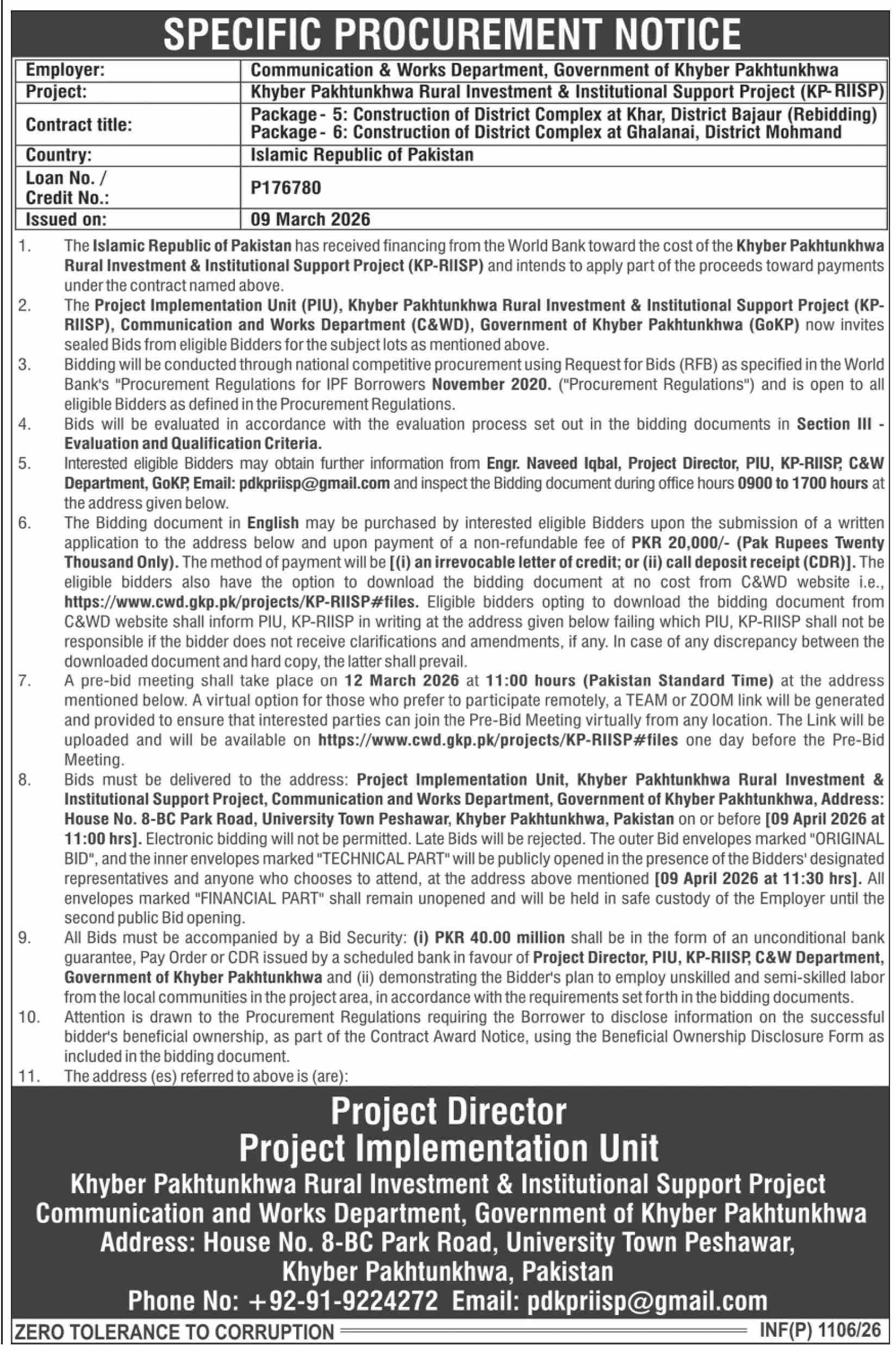 Buildings, Communication & Works, Construction, Engineering, Repair & Maintenance, Roads, Water Supply Scheme / Drains / Sewerage
