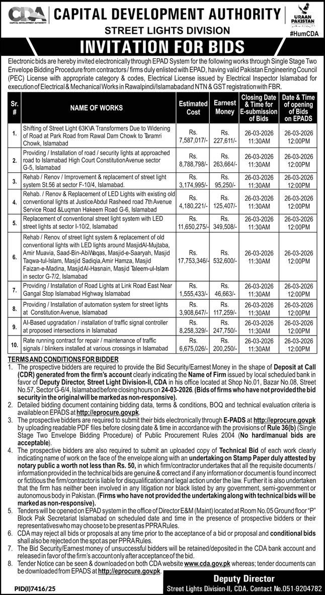 Buildings, Construction, Development Authority, Engineering, Light, Repair & Maintenance, Roads, Water Supply Scheme / Drains / Sewerage
