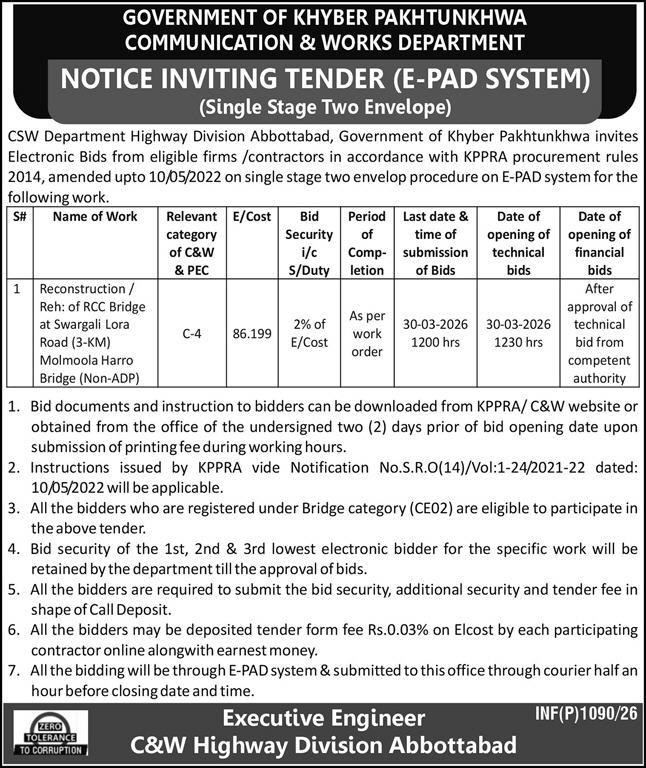Buildings, Communication & Works, Construction, Engineering, Repair & Maintenance, Roads, Water Supply Scheme / Drains / Sewerage