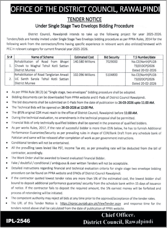 Buildings, Construction, Engineering, Repair & Maintenance, Roads, Water Supply Scheme / Drains / Sewerage