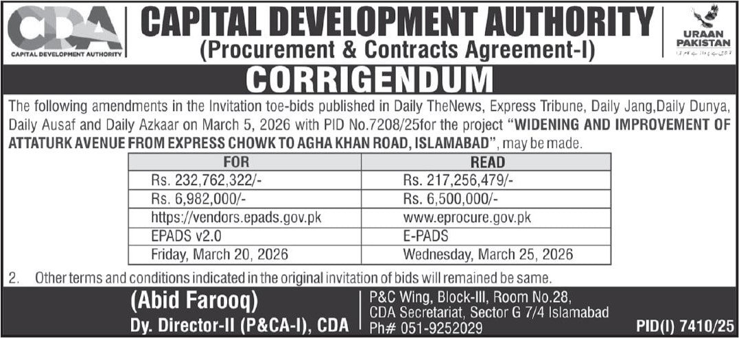 Buildings, Construction, Corrigendum/Addendum , Engineering, Repair & Maintenance, Roads, Water Supply Scheme / Drains / Sewerage