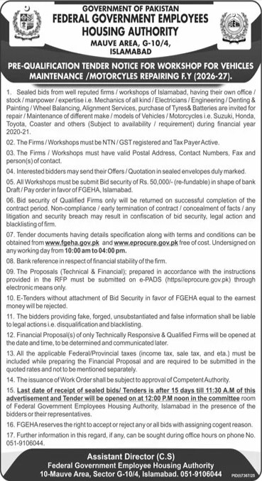 Auto Parts, Automobiles/Vehicles, General Order Supply, Motor Cycle, Pre Qualification, Transportation