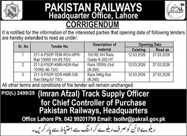 Corrigendum/Addendum , Electrical, Electronics, General Order Supply, Machinery, Mechanical, Railway
