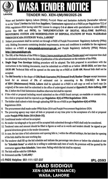 Construction, Engineering, General Order Supply, LDA, Machinery, Mechanical, Repair & Maintenance, WASA, Water Supply Scheme / Drains / Sewerage