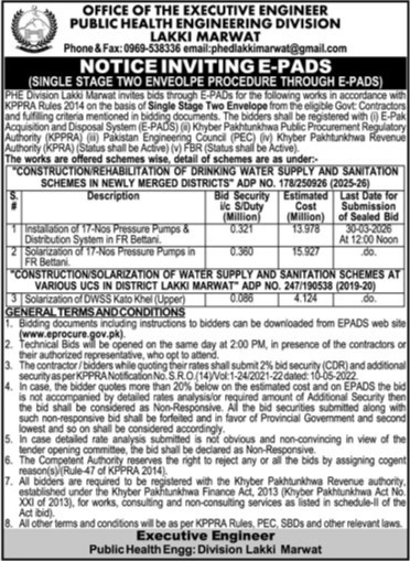 Construction, Energy, Engineering, Pumps, Repair & Maintenance, Tubewells, Water Supply Scheme / Drains / Sewerage