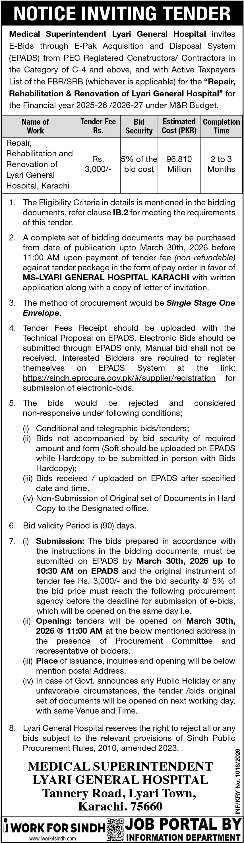 Buildings, Construction, Engineering, Repair & Maintenance, Roads, Water Supply Scheme / Drains / Sewerage