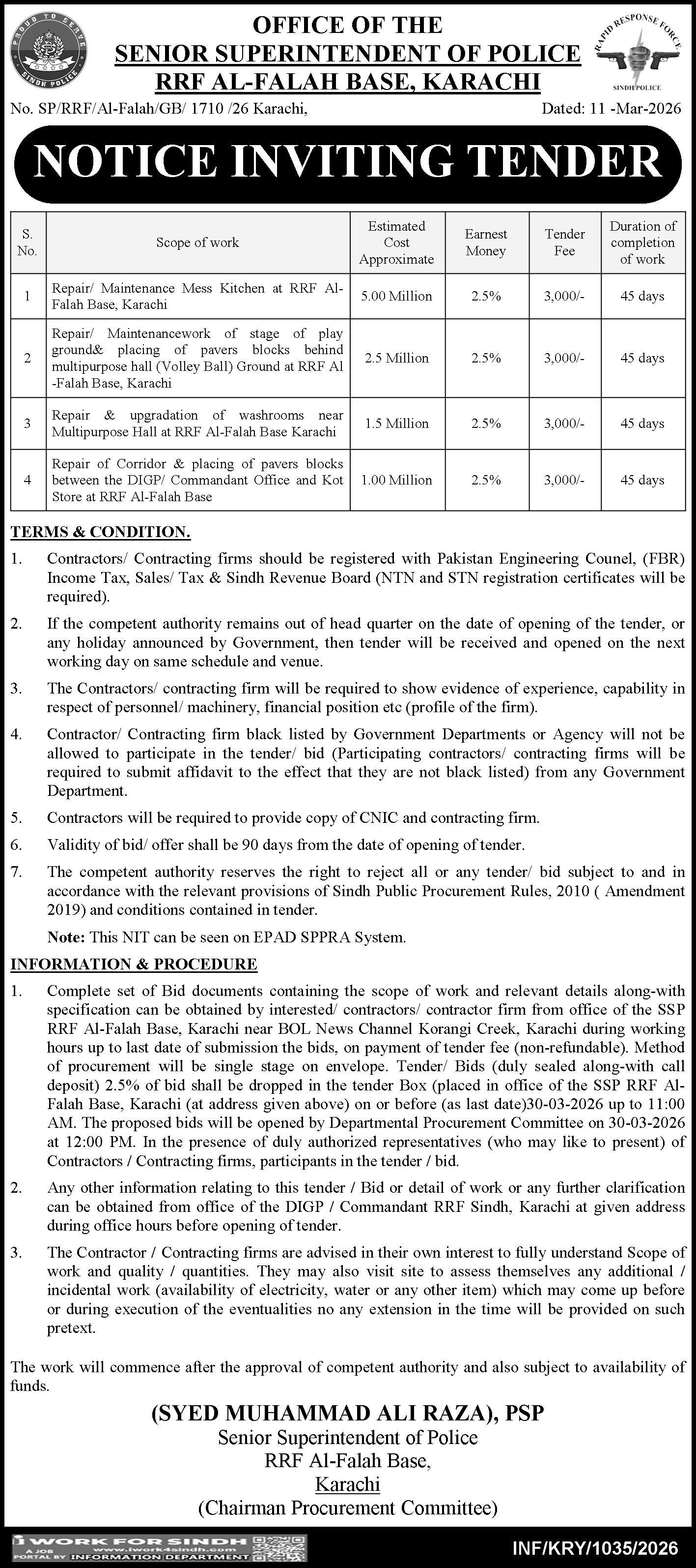 Tender Description