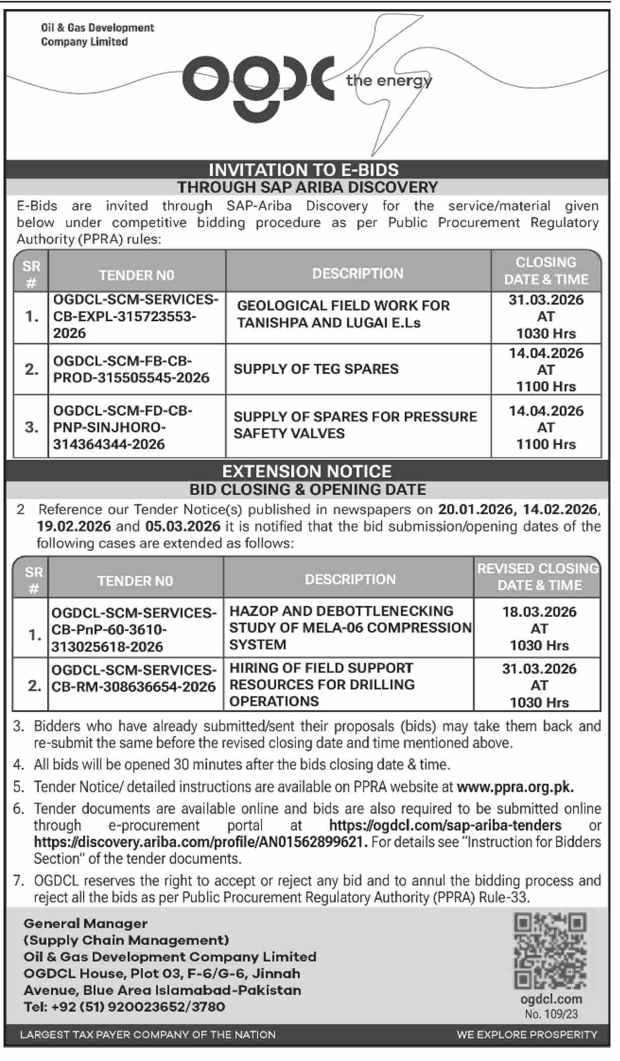 Construction, Electrical, Electronics, Engineering, General Order Supply, Machinery, Mechanical, OGDCL, OGDCL, Repair & Maintenance