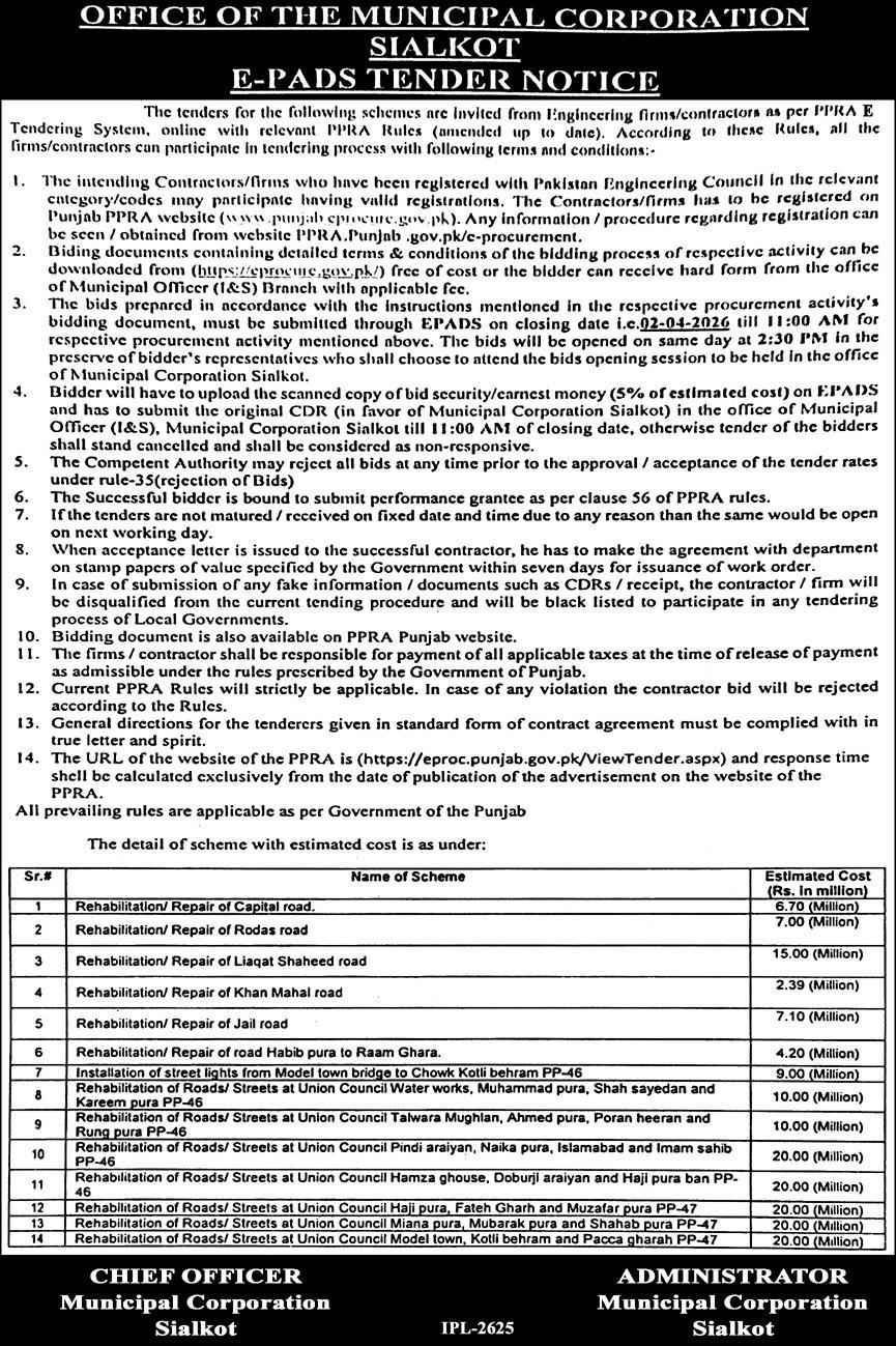 Buildings, Construction, Engineering, Repair & Maintenance, Roads, Water Supply Scheme / Drains / Sewerage