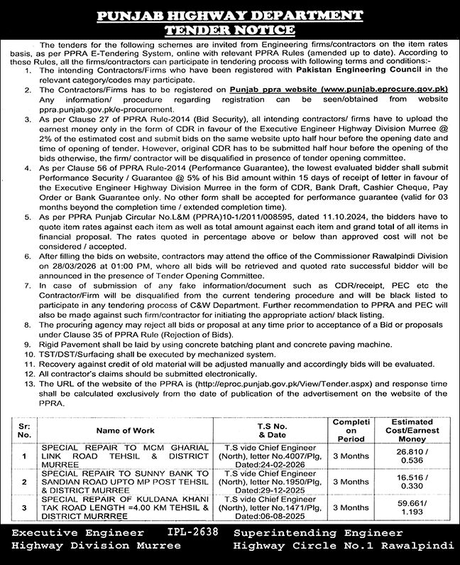 Buildings, Construction, Engineering, Highways, Repair & Maintenance, Roads, Water Supply Scheme / Drains / Sewerage