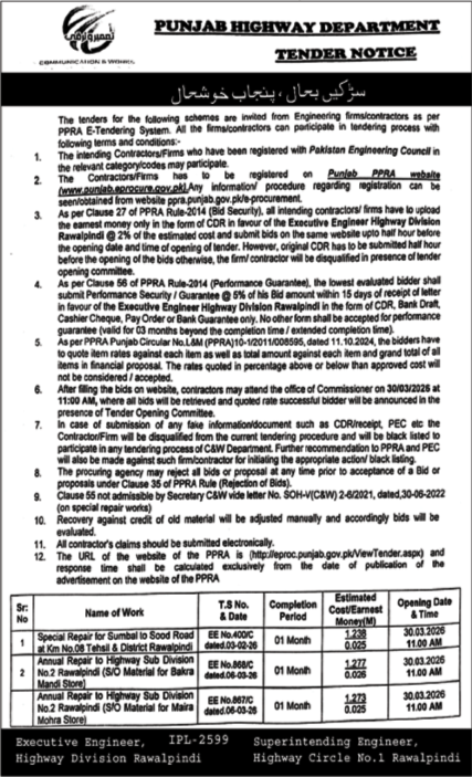 Buildings, Construction, Engineering, Highways, Repair & Maintenance, Roads, Water Supply Scheme / Drains / Sewerage