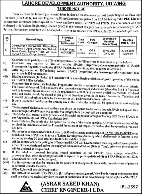 Buildings, Construction, Development Authority, Engineering, LDA, Repair & Maintenance, Roads, Water Supply Scheme / Drains / Sewerage