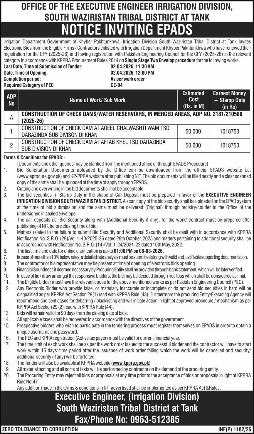 Buildings, Construction, Engineering, Repair & Maintenance, Roads, Water Supply Scheme / Drains / Sewerage